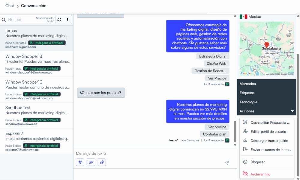Integra videos dentro de tu chatbot para explicar tus servicios, generar confianza y aumentar la conversión desde el primer contacto.